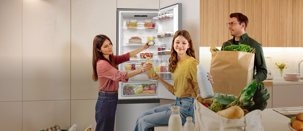 Система IonAir генерирует отрицательно заряженные ионы внутри устройства, которые равномерно распределяются в камере холодильника благодаря системе MultiFlow 360°. Так обогащённый воздух помогает продлить свежесть продуктов и устраняет неприятные запахи.